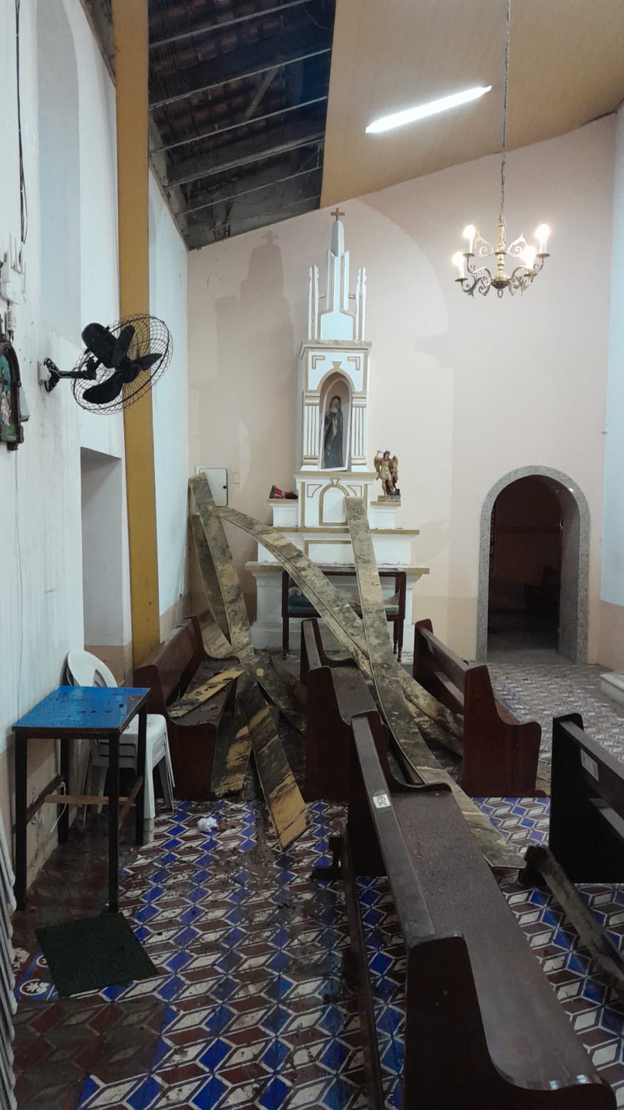 Parte do forro da Igreja Matriz de São Sebastião desaba após fortes chuvas em Ouricuri