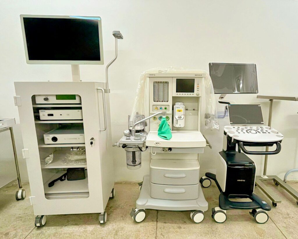 Os primeiros equipamentos desse investimento já chegaram ao HRFB e estão prontos para uso. Entre eles estão um carro de anestesia, que atua como um centro de controle móvel e garante mais segurança durante os procedimentos anestésicos; um aparelho de ultrassonografia, que reforça o diagnóstico por imagem; e uma torre de videolaparoscopia, que permitirá a realização de cirurgias minimamente invasivas, com incisões menores, maior precisão para o cirurgião e mais conforto para o paciente.