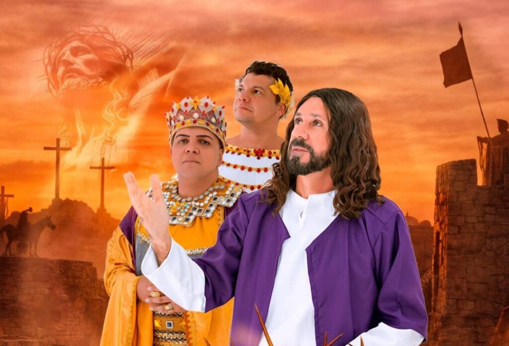 O elenco principal conta com Igo Edberg no papel de Pôncio Pilatos, Ubirajara Araripe interpretando Cristo e Rodrigo Amorim como o rei Herodes. A montagem promete impactar o público com cenários grandiosos, figurinos detalhados e uma narrativa envolvente.